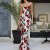 Crafted from a breathable blend of polyester and spandex, the dress offers a slight stretch that hugs your curves in all the right places, while ensuring comfort through the evening. The halter neckline draws attention to your shoulders and collarbones, while the floor-length hem adds drama and elegance to every step you take. A bold, eye-catching print makes this gown stand out from the crowd, giving you a statement look without needing extra accessories.